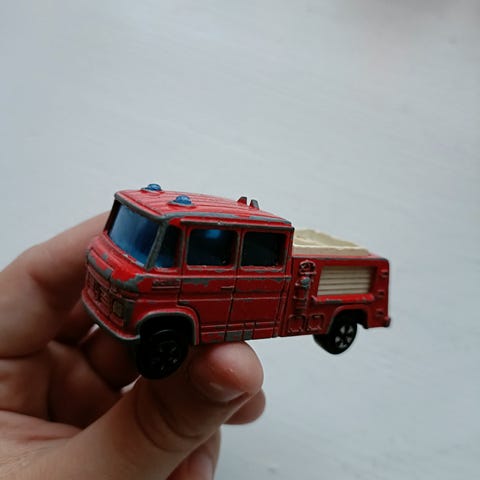 Palomiesaiheinen leikkiauto nosturilla punainen ja valkoinen