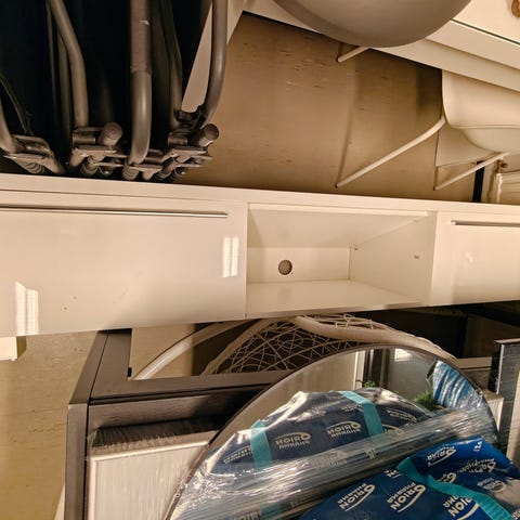 Muuten hyvässä kunnossa, mutta alemman laatikon kahva haljennut.