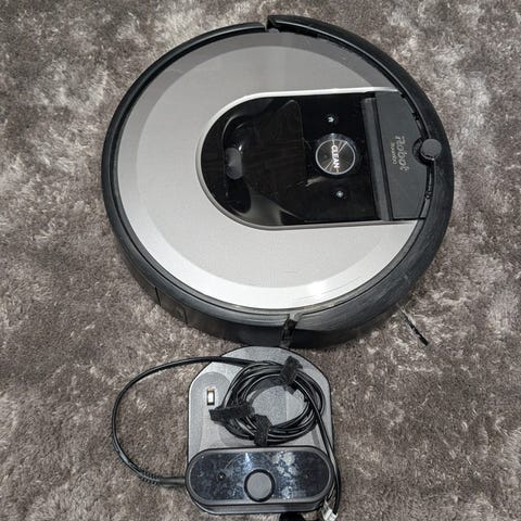 Kuvan mukainen robotti-imuri. Imurissa uudet lattiaharjat sekä uusi suodatin.