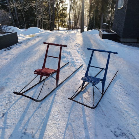 2 potkukelkkaa,toinen vaatii pientä korjausta