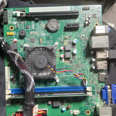 Micro-ATX -kokoinen emolevy, jossa i5-9400 kiinni ja 2x4GB 2133MHz DDR4-muistia. Prosu siis ilman F-kirjainta, eli sisältää oman näyttiksen, jolla pärjää työpöytäkäytössä. Irrotettu toimivana koneesta joulukuussa päivityksen tieltä. Taustapeltiä ei ole. Noudolla tai postit ostajan piikkiin. Noutaja saa Intelin vakiojäähyn mukaan.