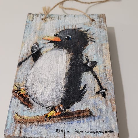 Ulla Kauhanen, Variksenpoikasen vapaa pudotus -öljyvärimaalaus kankaalle.