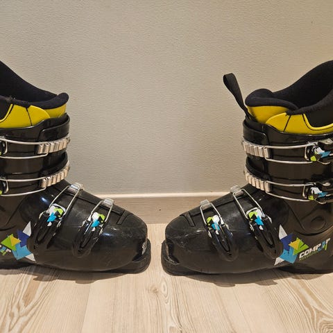 Rossignol laskettelumonot koko 245. Meillä oli käytössä 36 kengän koossa, nyt 37 liian pienet. Kapeahko malli. Käytön jälkiä löytyy pinnasta. Vain nouto.