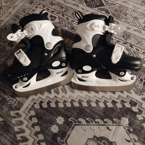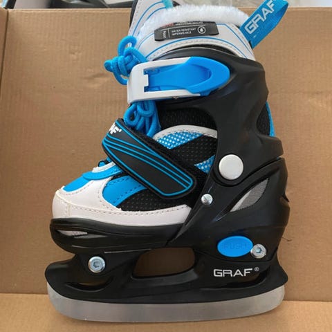 Graf Kid Adj. Ice Skate lasten jääkiekkoluistimet, koko 27. Luistimet ovat säädettävät ja sopivat lapsille. Värit musta ja valkoinen. Luistimet on suunniteltu Euroopassa ja valmistettu Kiinassa.