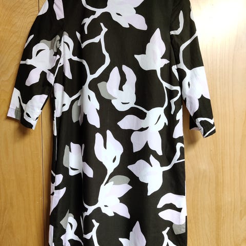 Kerran käytetty mustavalkoinen Marimekon kotelomekko + vyö. Sivutaskut. Valkoinen vuori. Mekkoa voi käyttää vyön kanssa tai ilman. Takana vetoketju.