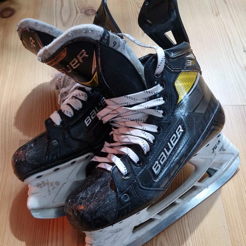 Bauerin supreme 2s luistimet koossa 7.5 eli 42.5 D-lestillä. Luistimissa ramonedgen terät jotka eivät uusille paljoa häpeä. Luistimet olleet vähällä käytöllä ja hyvässä kunnossa.