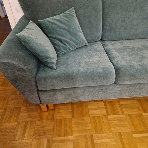 Myydään isomman sohvan tieltä mukava tummanvihreä vuodesohva. Sohva on hyvässä kunnossa. Ei tahroja, mutta vähän nukkaantumista. Levitysmekanismi toimii moitteetta.