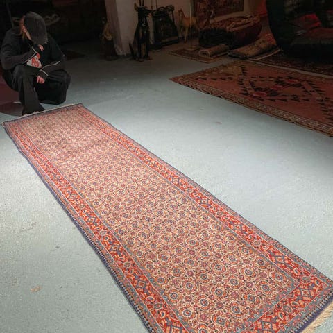 käsinsolmittu itämainen aitomatto villamatto vintage persialainen aito villa lilihan punainen purppura pitkä käytävä matto käsinkudottu käsin käsintehty käsityö antiikkimatto vintagematto helsinki helsingissä