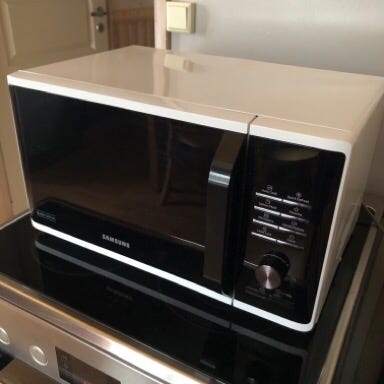 Mikroaaltouuni. Oven avausnappi temppuilee mutta ei haittaa muuten käyttöä.