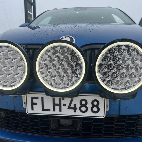 Löytyy kaksi kappaletta telineitä joissa paikka 3valolle ja sit tuo wrc teline. Myös johtosarja on kiinni valoissa, eli kytkee vain herätteen, virran ja maan niin skulaa.