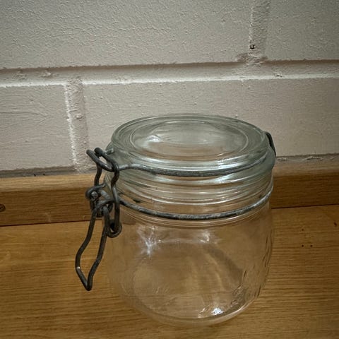 Lasipurkki kannella.