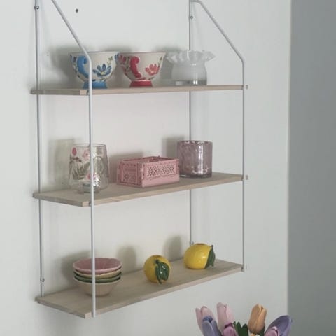 Musta metallinen koristehylly, siistissä kunnossa ei näkyviä naarmuja