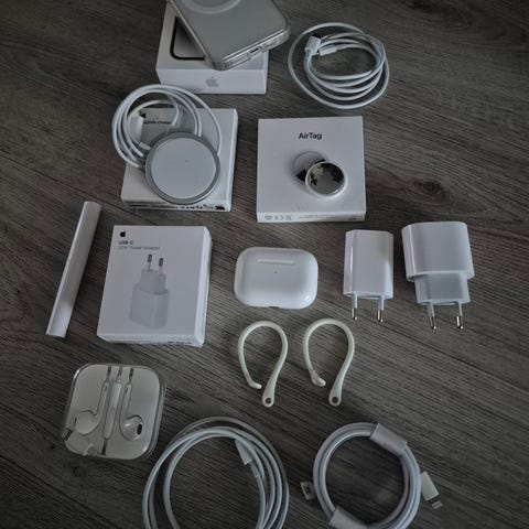 Mukaan alkuperäinen paketti, kameran linssisuoja, latauskaapeli sekä applen oma adapteri. Airpodit toimii moitteetta, ääni ei säröile ja puheentunnistus yms toimii kuten pitää. Mukaan kaikki mitä uutena ostaessa. Tästä pikkurahalla hyvä setti seuraavalle. Lisää kuvia saa pyytämällä.