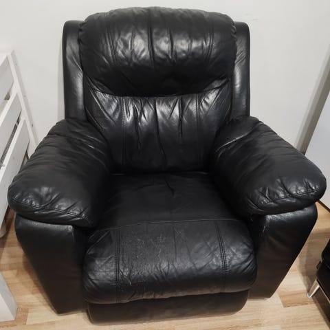 Mukava istua ja siisti on. Takaa vähän revennyt nahka verhoilu, näkyy kuvissa.