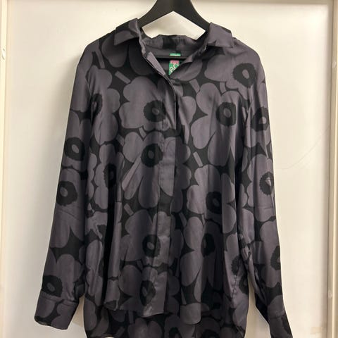 Myydään hyväkuntoinen Marimekko musta unikko silkkipaita.