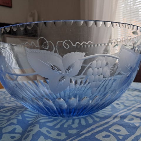 1960-luvulta peräisin oleva kaunis Anchor Hockingin valmistama Star of David -kristallikulho, naarmuton ja hyväkuntoinen.