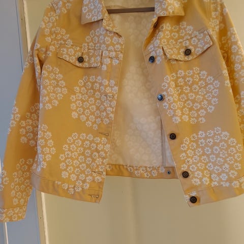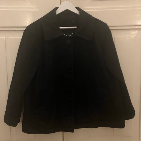 Takki on hyvä käyttökuntoinen, A-linjainen, joten koko 38-40. Materiaali on 100% paksu puuvilla.