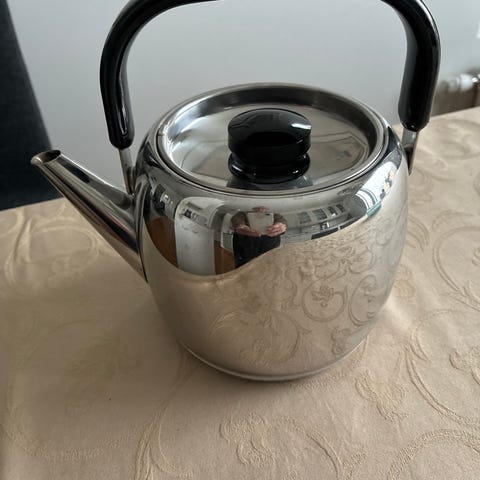 Timo Sarpanevan suunnittelema ja Opan valmistama vesipannu. Kunto hyvä. Käytetty vain veden keittämiseen. Pannun erikoisuus on, että se toimii myös induktioliedellä (testattu usealla eri induktioliedellä)