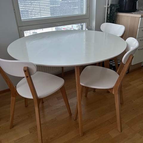 Myydään hyvänkuntoinen ja siisti laadukas Tuolit jossa pehmusteet ovat siistit ei Eläin talous. valkoinen Ruokailuryhmä