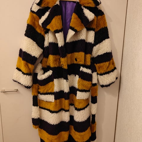 Vimman pitkä takki koossa S/M. Takin vasemman taskun alareunassa on pieni reikä, korjattavissa ompelukoneella, tämä huomioitu hinnassa. Postitan samaan hintaan! Myös nouto Tervakoski/ Riihimäki onnistuu! Mobilepay- tai käteismaksu.