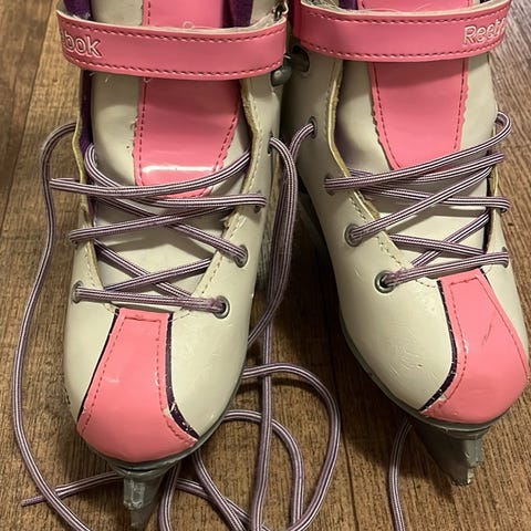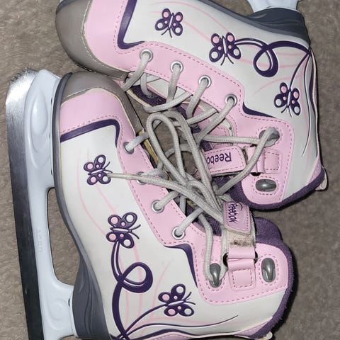 Reebok lasten luistimet koko 33, väriltään pinkki ja valkoinen