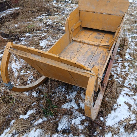 Myytävänä vanha hevosreki, soveltuu esim. heinien kuljetukseen.