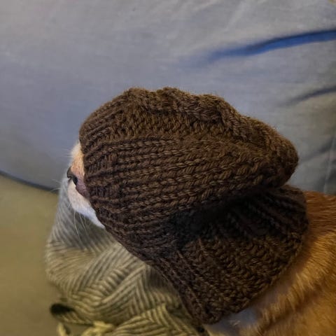 Beige pienen koiran palmikkopipo (chihuahua).
