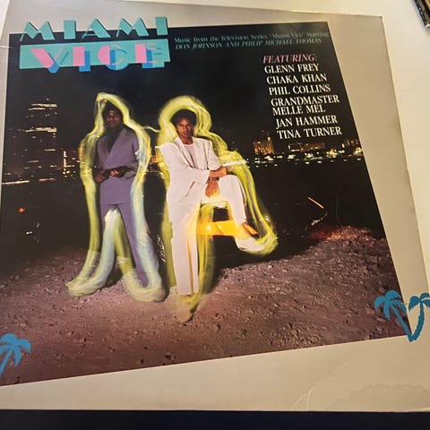 Miami Vice II LP, sisältää musiikkia televisiosarjasta Miami Vice. Todellista 80 luvun meininkiä. LP ssä ei ole syviä naarmuja, mutta on käytetyn näköinen. Itselläni ei ole laitteita, jossa testata, joten toiminta takuuta en voi antaa. Kotelo kulunut ja siinä on cut-out. Jos ei muuten niin jo kansien takia hyvä 80 luvun ystäville.