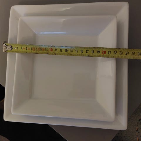 Kolme lasista tarjoilulautasta. Väri kirkas, vaikka näyttää kuvassa sinertävältä. Kaunis kuviointi.