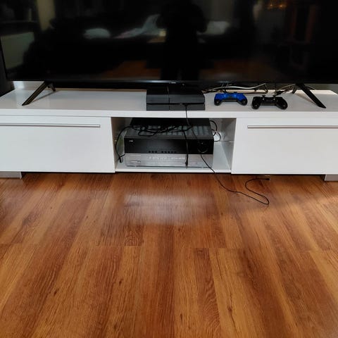 Pieni kuluma takakulmassa. 5v sitten ostettu TV taso Kodin1:stä.
