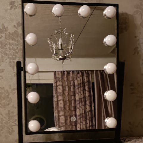 LED-valolla oleva peili, ladattava. Latausjohto tulee mukaan. Halkaisija: 55 cm, Syvyys: 4 cm
