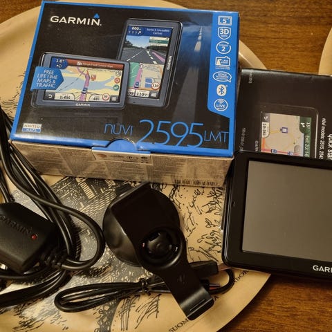Garmin nuvi 2597 navigaattori, jossa 5 tuuman näyttö. Laitteessa on sisäinen liikennevastaanotin, 8GB tallennustilaa ja 128MB RAM-muistia. Käyttöjärjestelmä on versio 5.50 ja laite tukee suomenkielistä ääniopastusta. Mukana tulee kiinnitystarvikkeet ja kuljetuskotelo. Mahdolliset toimituskulut lisätään hintaan/ nouto