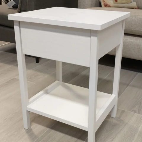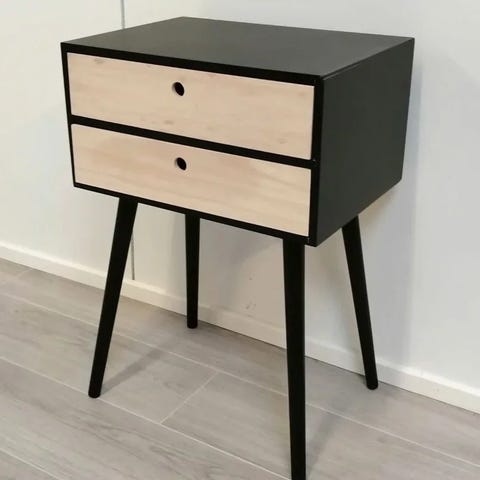 Kaunis Sylvia-yöpöytä sopii monenlaisen sängyn rinnalle. Yläosassa on vetolaatikko ja alaosassa on korkea ovikaappi, jossa on yksi säädettävä hyllylevy. Kaapin oven saa asennettua kasausvaiheessa oikean- tai vasemmankätiseksi. Materiaali on valkoiseksi maalattua mfd-huonekalulevyä.