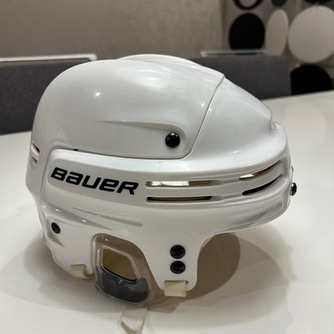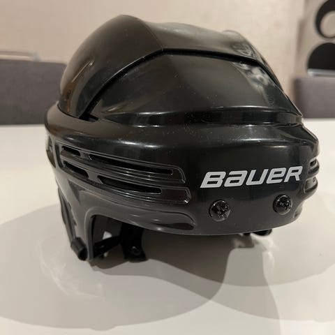 Bauer jääkiekkokypärä musta, varustettu kasvovisiirillä. Eläintalous.