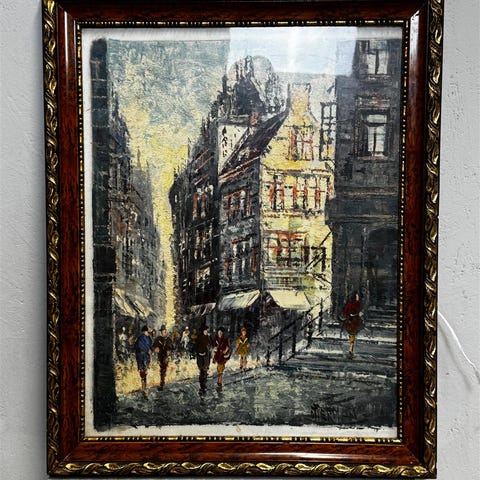 Maalauksessa on jälkiä kattotiilien kohdalla.