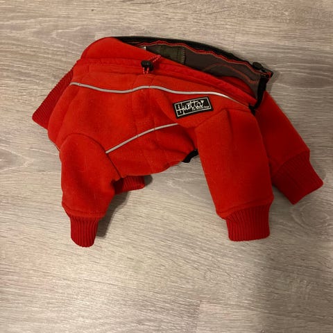 Haalarissa vetoketju selässä (pituus 34 cm)