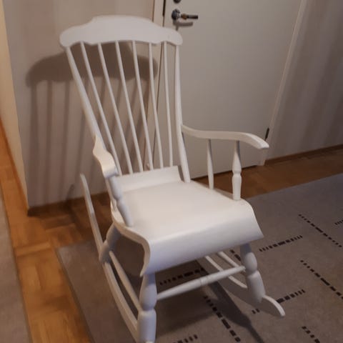 Tästä upea vintage keinutuoli seuraavalle. Olisiko 50 lukua. Ikää tällä jo on, mutta on ryhdissään, kulumaa näkyy mutta ei mitään niin suurta että tarvisi mielestäni verhoilua.