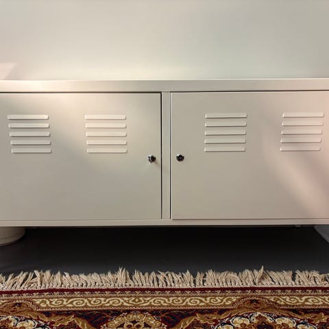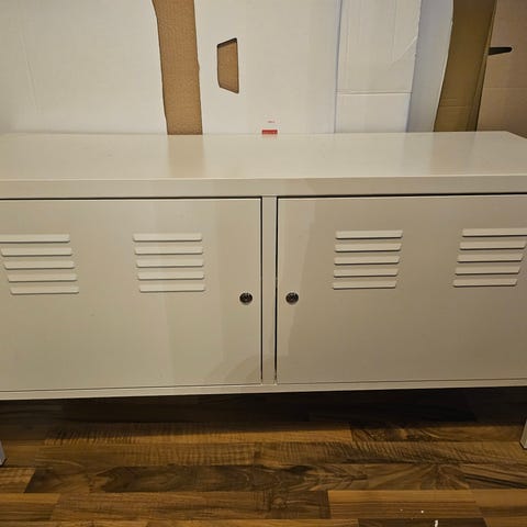 Klommo vasemmassa ovessa ja oikeassa ovessa saranan kohdalla pieni jälki.muuten hyvä kuntoinen kaappi.toinen lukko uusittu joten mukaan tulee kahdet eri avaimet.