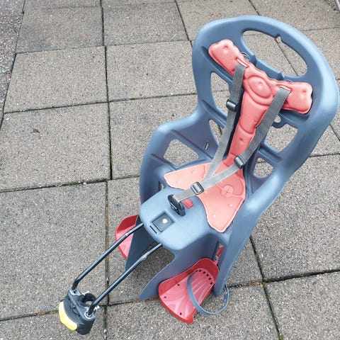 Lastenistuin pyörään lapsen kuljettamiseen. Asennetaan pyörän taakse, varustettu kestävällä rungolla, turvavöillä ja säädettävillä jalkatuilla. Mukana pehmeä pehmuste lapsen mukavuutta varten. Sopii päivittäiseen käyttöön ja pyöräretkille. Hyvässä kunnossa, kaikki ehjää, kiinnikkeet sisältyvät. Enintään 22 kg.