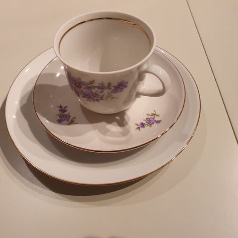 Kaunista vintage posliinia. Valmistettu 1925-1939. Lautasten pohjassa nimikointi, nimikirjaimet RN tai Ruth.