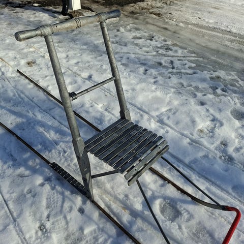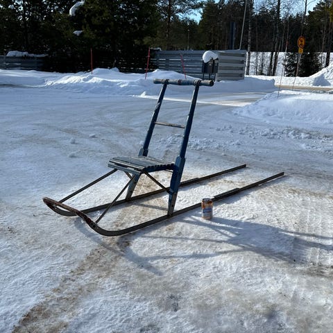 Meille pieneksi jäänyt lasten potkukelkka etsii uutta kotia.