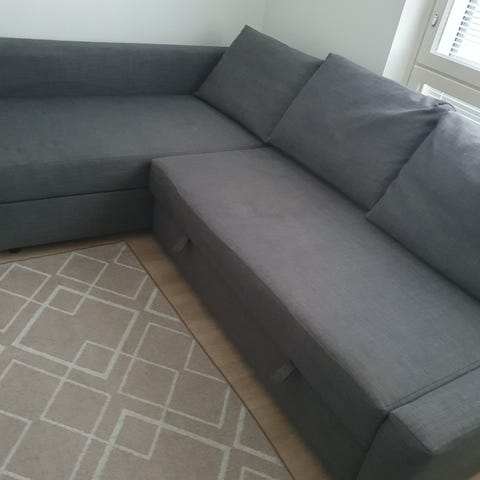 Rahin mitat 77x55cm, rahi avautuu säilytystilaksi. Mukana tulee 5 sohvatyynyä.
