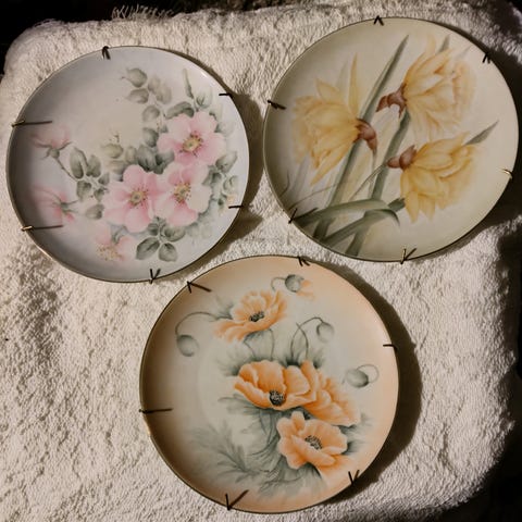 Vanhat lasi lautaset (ei käytetty) 5 kpl + 1 pienempi vähän käytetty. Tarjoa näistä.
