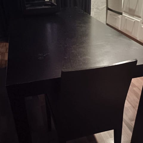 Annetaan pöytäryhmä, ehjä, mutta vaatii jo uutta pintaa sekä kankaiden pesu jää hakijalle.