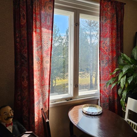 Käsintehdyt punaiset verhot
