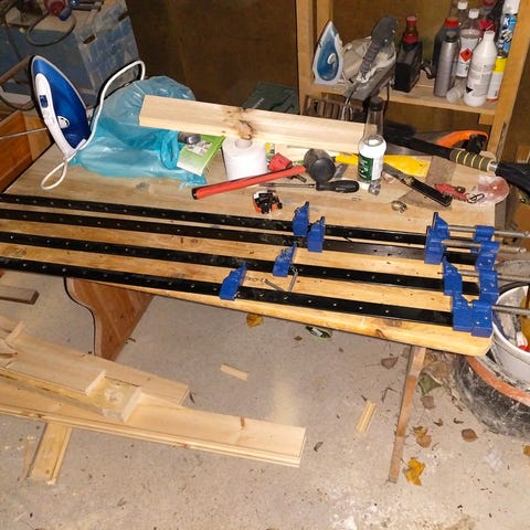 Kuvan mukaiset vankkatekoiset kiskopuristimet. Max puristusväli 950mm.