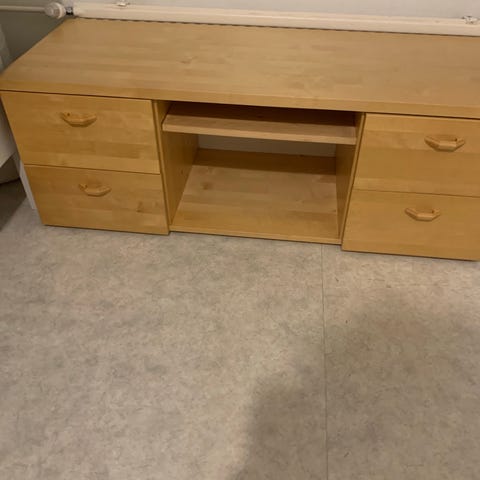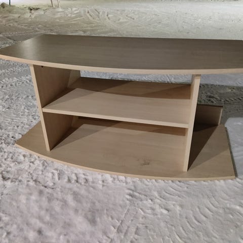 TV-taso, jossa on vaalean puun väri ja lasiset sivuosat. Sopii television ja muiden viihdelaitteiden sijoittamiseen. Tarjoaa säilytystilaa ja tukevan alustan.