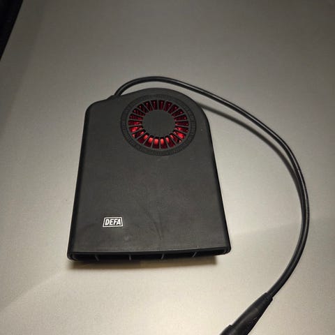 Defa Type 430056 termini II lämmitin, teho 1400W, käyttöjännite 230V AC 50Hz. Laite on tarkoitettu auton sisätilan lämmitykseen ja varustettu virtakytkimellä sekä kiinteällä virtajohdolla.