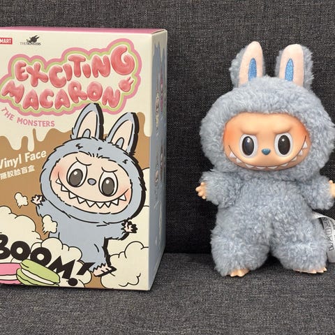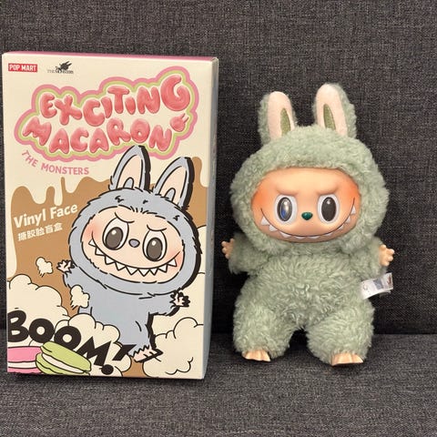 Myydään uusi, suoraan Pop Martilta tilattu aito Exciting Macaron -sarjaan kuuluva Labubu ”Soymilk”. Pakkaus on avattu siististi pohjasta ja mukaan tulee foliopussi sekä kortti.