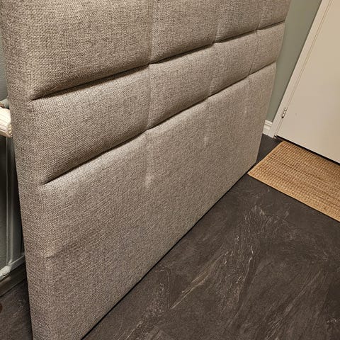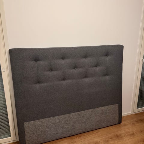 Sotkan (Donna) malliston 160cm leveä erittäin siisti lähes uusi sängynpääty. Väri vaaleahko hopeanharmaa/keskiharmaa. Kangasverhoilu, nappikoristeet. Kangas polyesteria. Puu-/kalustelevyrunko. Pysyy lattialla sängyn ja seinän välissä myös ilman erillistä kiinnitystä. Tätä ei ole kiinnitetty, joten tuotteessa ei ole myöskään jälkiä kiinnityksestä. Korkeus lattiasta 105cm. Ollut vähässä käytössä alle vuoden. Taloudessa ei lemmikkieläimiä.